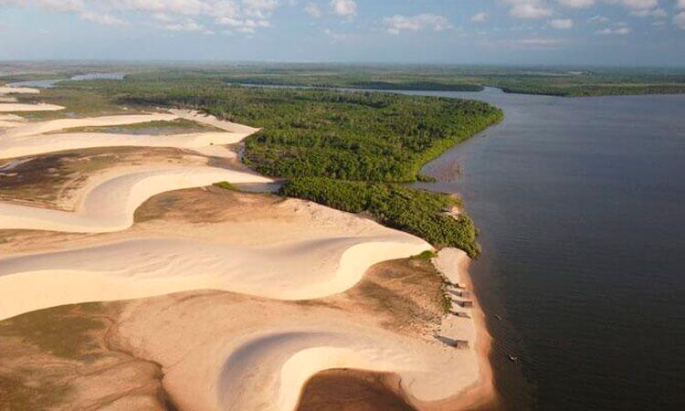 The delta of the Parnaíba River includes an archipelago of over 70 islands and an area of 2,700km². The landscapes characterized by mangrove forests rich in species, water levels, extensive dune landscapes permeated by picturesque lagoons, rivers that flow lazily into the Atlantic Ocean and paradisiacal beaches. Seen from above, the meeting point of the Parnaíba River and the Atlantic Ocean looks like a gigantic jigsaw puzzle, with each piece representing one of over 70 islands. Navigating the many rivers and their tributaries in the Delta requires a great deal of experience, as it is easy to get lost in the igarapés or get stuck on sandbanks. Just like Nicolau de Resende, the Portuguese explorer of the region, who had to be rescued by local Tabajara Indios in 1571.